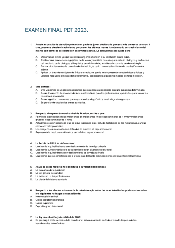 He publicado nuevos examenes de 4º PDT Psiquiatría, digestivo, hematología, oncología, medicina interna, locomotor, piel y órganos de los sentidos: EXAMEN-FINAL-PDT-2023.pdf