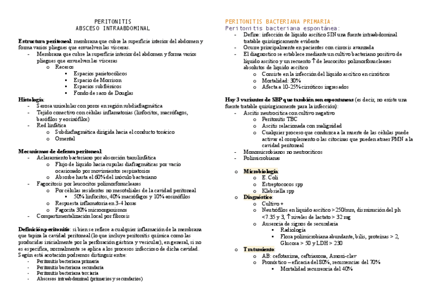 He publicado nuevos apuntes de 4º PDT Psiquiatría, digestivo, hematología, oncología, medicina interna, locomotor, piel y órganos de los sentidos: PERITONITIS.pdf