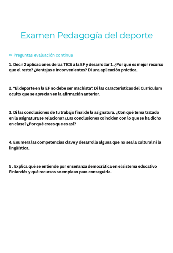 He publicado nuevos examenes de 4º Pedagogía de la Actividad Física y del Deporte: Preguntas-examen-pedagogia.pdf