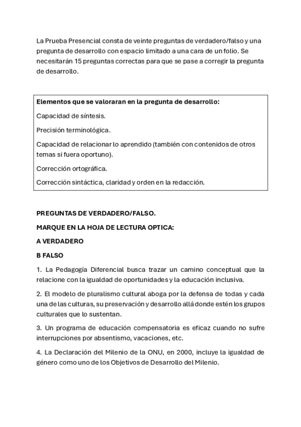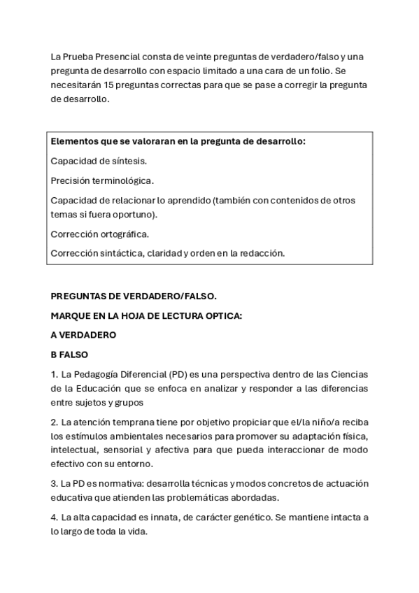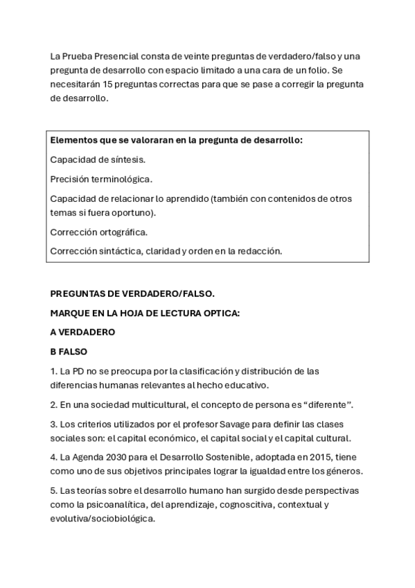 ¡Hola! ¿Alguien sabe qué puntuación recibe cada apartado del examen? (Test V/F y pregunta de desarrollo). ¡Gracias!