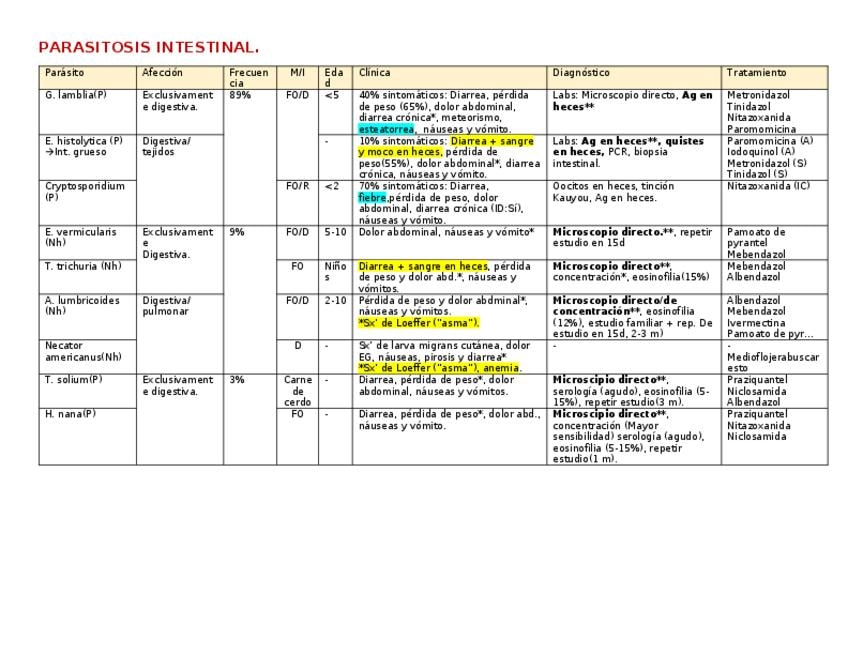 Principales enfermedades parasitarias en niños, patología, clínica, estadio infectante, diagnóstico y tratamiento