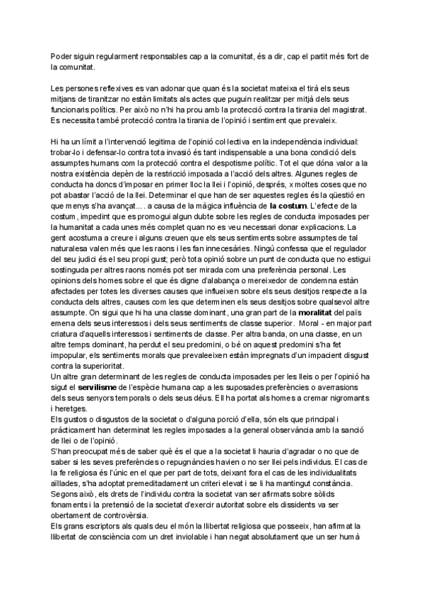 Resum del llibre "Sobre la Llibertat" de Stuart Mill Capítols I,IV,V