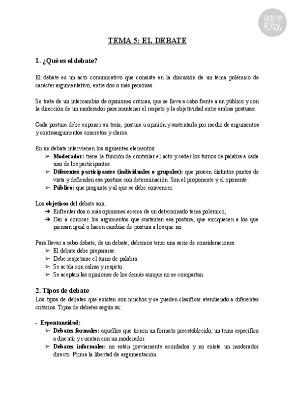 He publicado nuevos apuntes de 1º Pensamiento Critico, Discurso y Argumentación: TEMA-5-EL-DEBATE.pdf