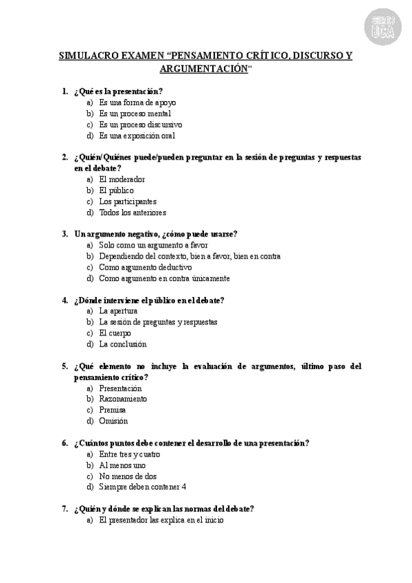 He publicado nuevos test de 1º Pensamiento Critico, Discurso y Argumentación: SIMULACRO-EXAMEN-PENSAMIENTO-CRITICO-DISCURSO-Y-ARGUMENTACION-1.pdf