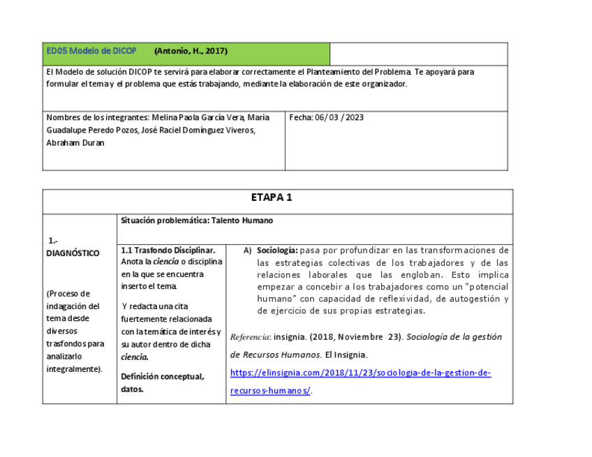 He publicado nuevos apuntes de 1º Pensamiento crítico para solución de problemas: ACT5GARCIAMELINADICOP.pdf