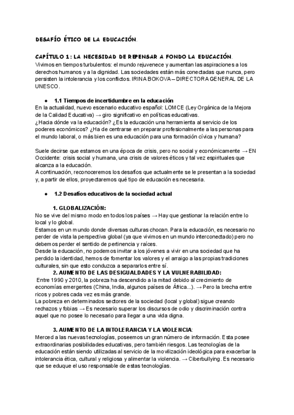 Apuntes sobre el libro "El desafío ético de la educación"