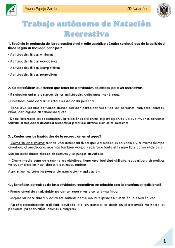 TRABAJOS AUTÓNOMOS NATACIÓN 1