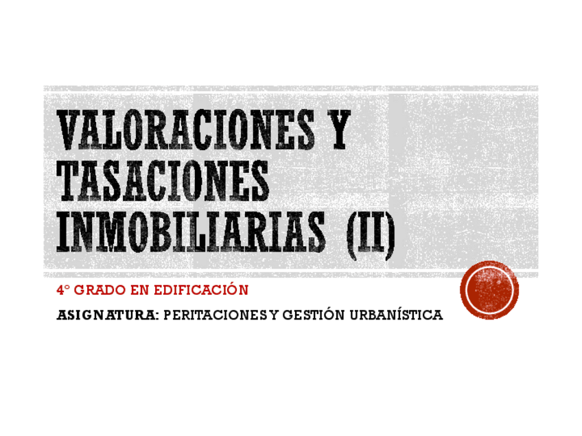 He publicado nuevos apuntes de 4º PERITACIONES Y GESTIÓN URBANÍSTICA: Valoraciones y tasaciones
