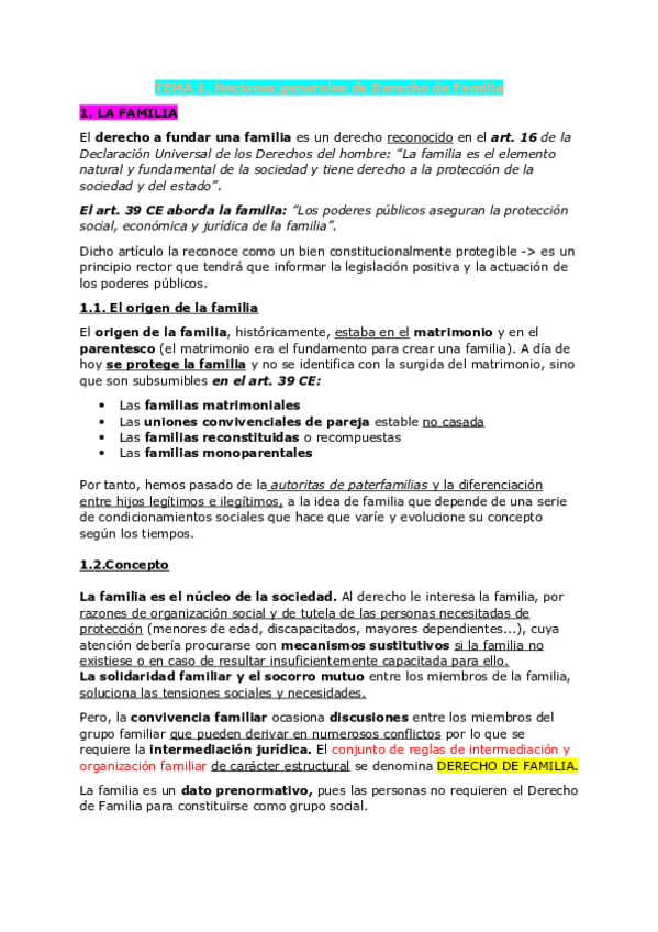Resúmenes de Derecho de Familia