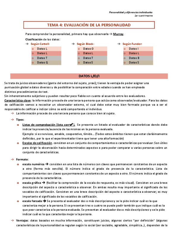 Personalidad y diferencias individuales PRIMER CUATRIMESTRE