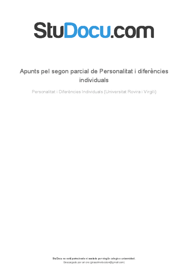 He publicado nuevos apuntes de 1º Personalidad y Diferencias Individuales: Tema I. Personalitat.pdf