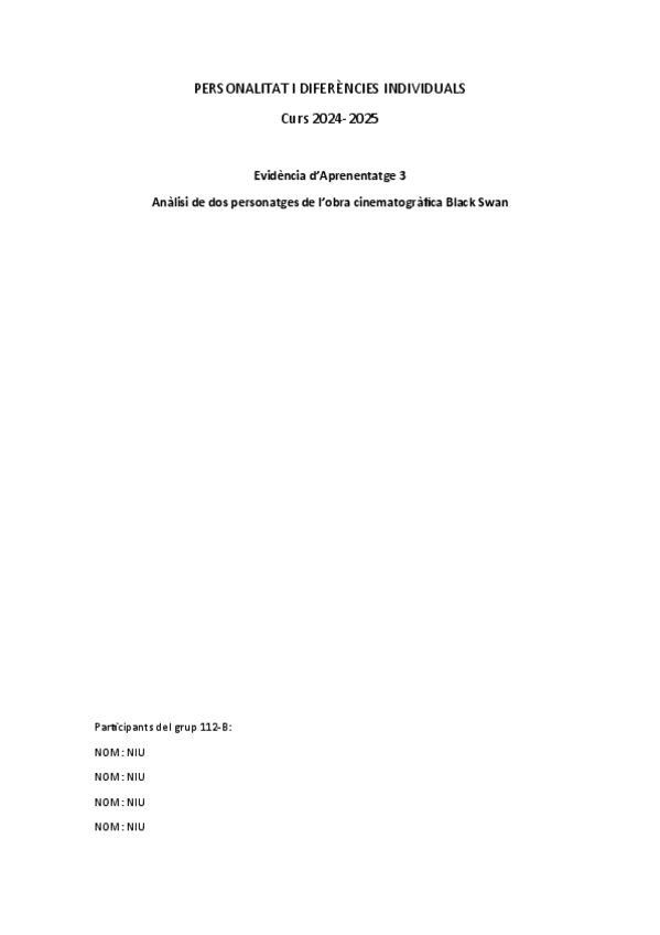 Treball respecte l'anàlisi de dos personatges de l’obra cinematogràfica Black Swan