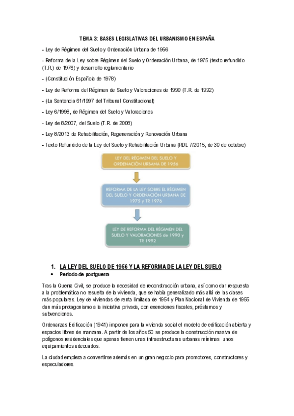 He publicado nuevos apuntes de 3º Planeamiento Urbano: Tema 3_Bases legislativas del Urbanismo en España_Completo.pdf