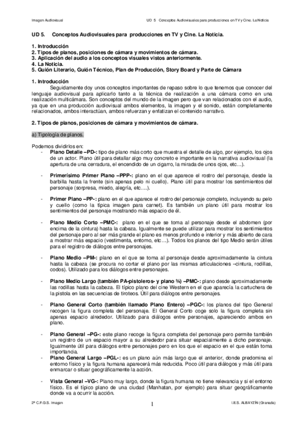 He publicado nuevos apuntes de Planificación de cámara en audiovisuales: TEMA-1.pdf