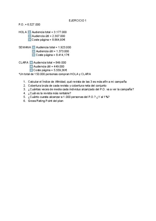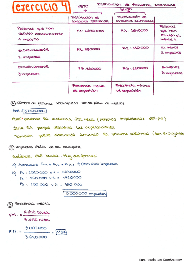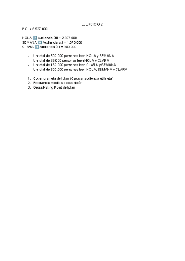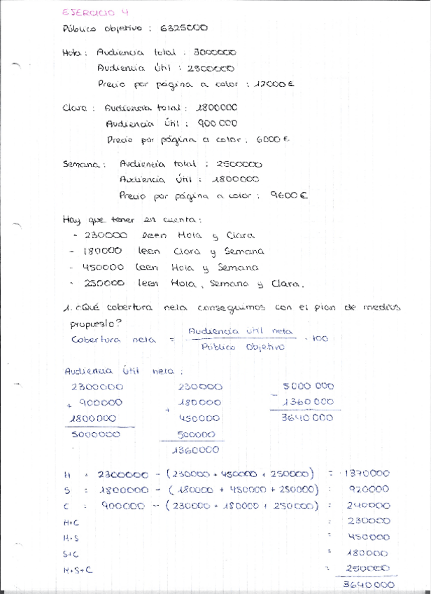 Explicación en español de como hacer ciertos cálculos de planificación de medios.