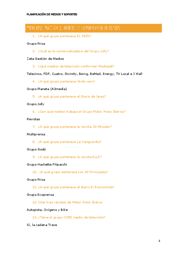 He publicado nuevos practicas de 2º Planificación de Medios y Soportes: Grupos de Comunicación