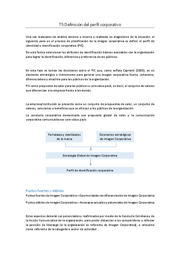 He publicado nuevos apuntes de 3º Planificación Estratégica de la Imagen Corporativa y de Marca: Tema 5 Definición del perfil corporativo.pdf