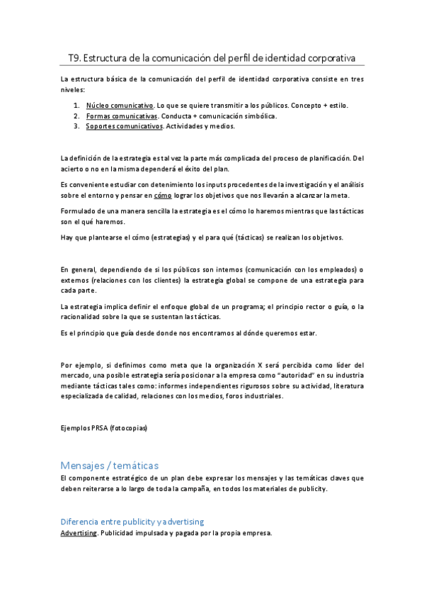 He publicado nuevos apuntes de 3º Planificación Estratégica de la Imagen Corporativa y de Marca: Tema 9 Estructura básica de la comunicación del perfil de identidad corporativa.pdf