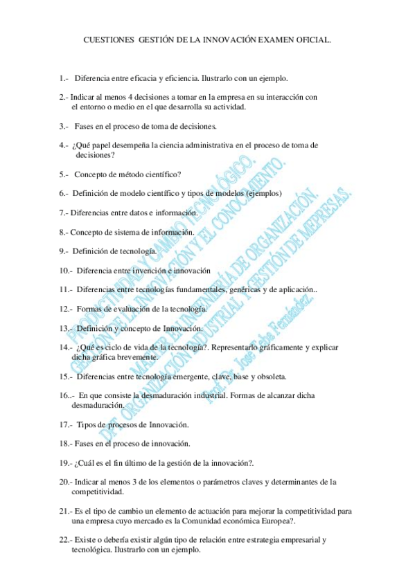 He publicado nuevos ejercicios de 1º Planificación Estratégica y Gestión Lean de la I+d+I: Cuestiones-Innovacion.pdf