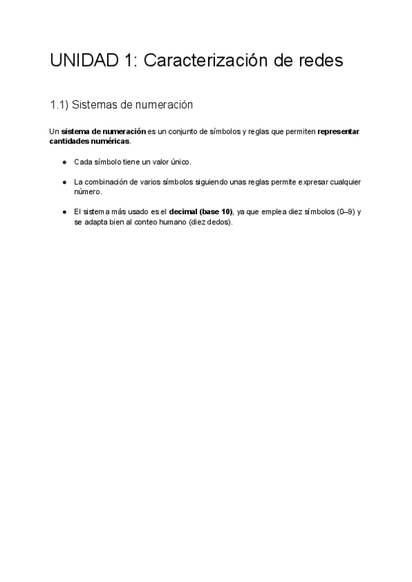 UNIDAD 1: Caracterización de redes. Sistemas de numeración: Binario, Octal, Decimal y Hexadecimal