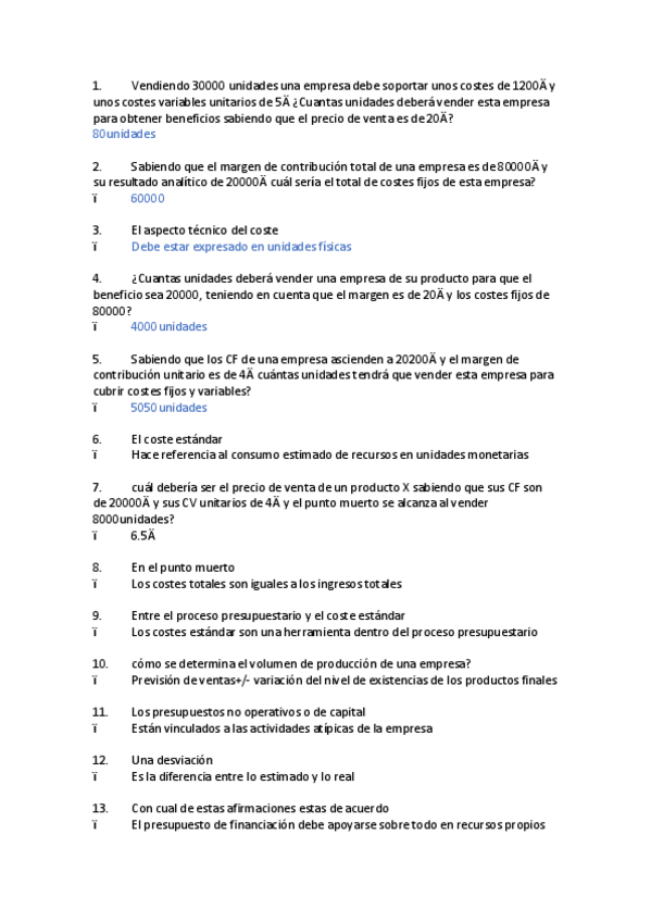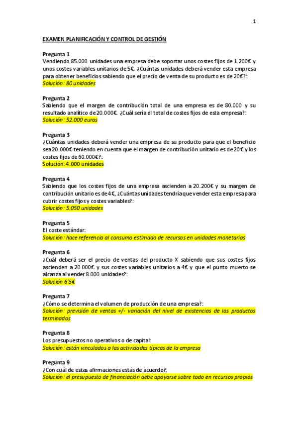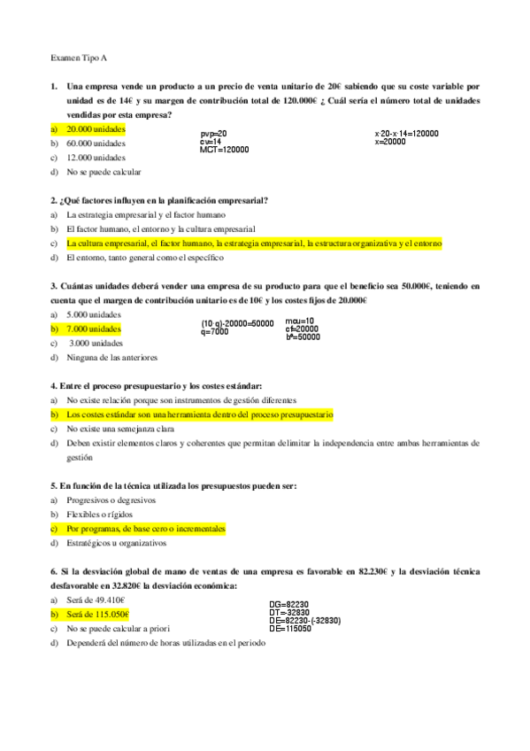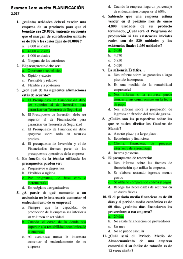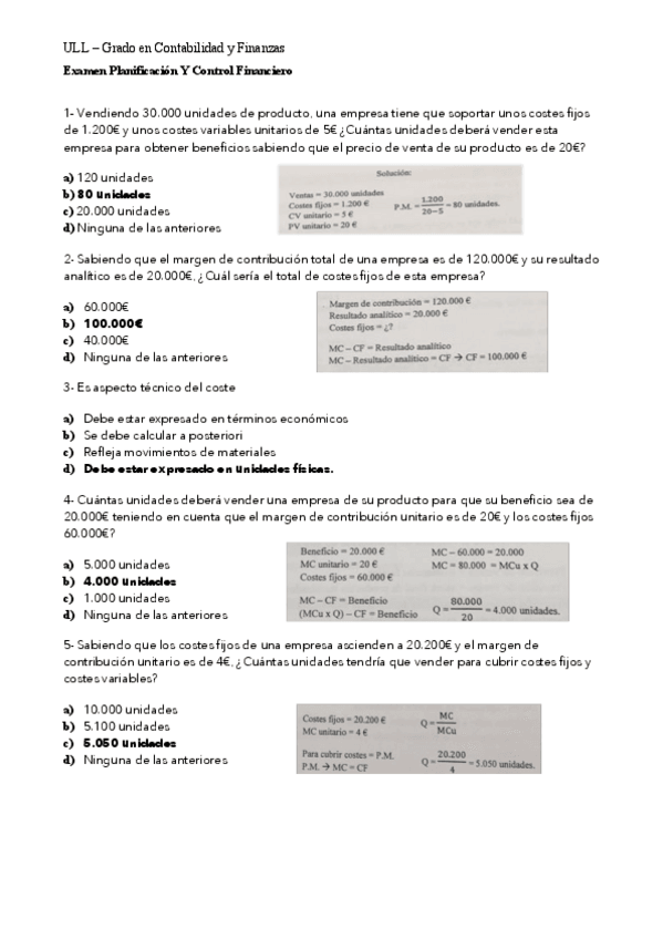 He publicado nuevos examenes de 3º Planificación y Control Financiero: Preguntas de Exámen Tipo Test