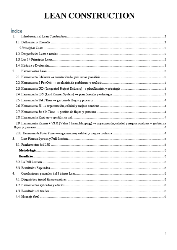Lean Construction. Temario