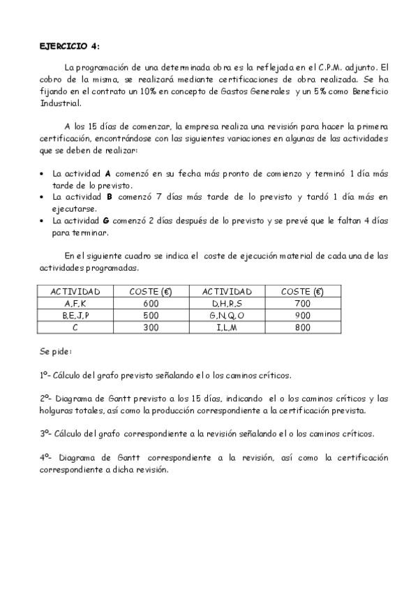 He publicado nuevos ejercicios de 4º Planificación y Programación de Obras II: EJERCICIO-1.pdf