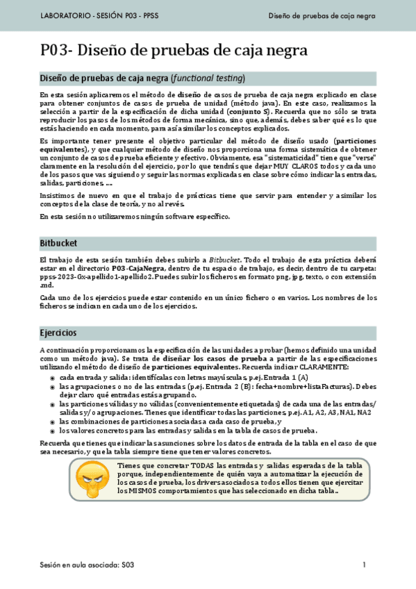 He publicado nuevos practicas de 3º Planificación y Pruebas de Sistemas Software: Ejercicios-Caja-negra.pdf