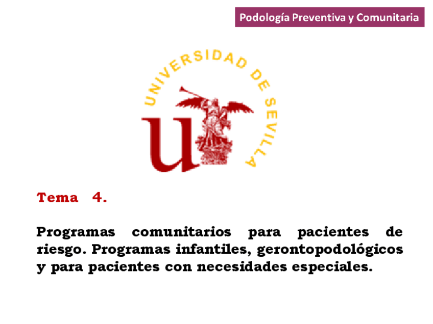 He publicado nuevos apuntes de 2º Podología Preventiva y Comunitaria: Tema 4. Programas comunitarios para pacientes de riesgo.pdf