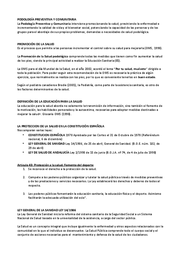 He publicado nuevos apuntes de 2º Podología Preventiva y Comunitaria: Temario Ana Juana RESUMIDO