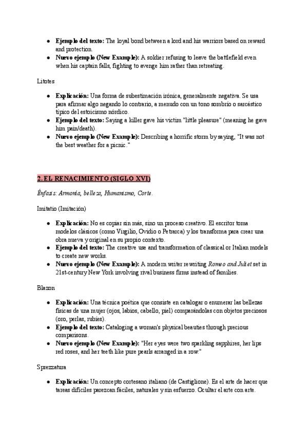 El documento titulado 1.Medieval Literature contiene todos los contextos y algunos autores, los comentarios son lo demás