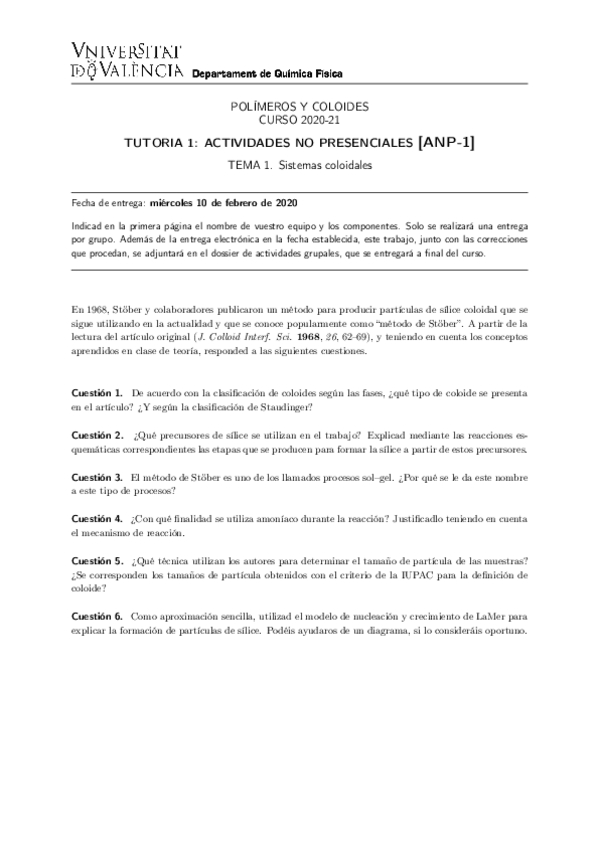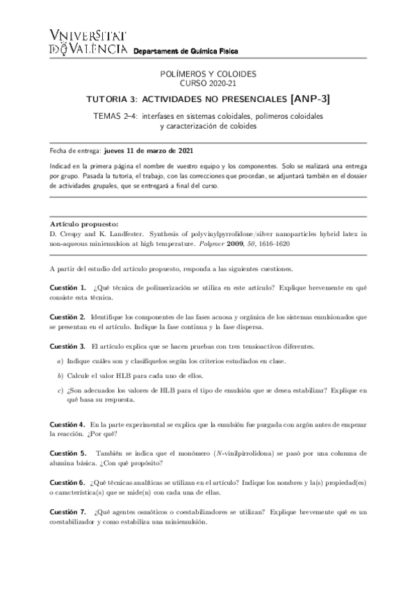 He publicado nuevos trabajos de 4º Polímeros y Coloides: Actividades no presenciales