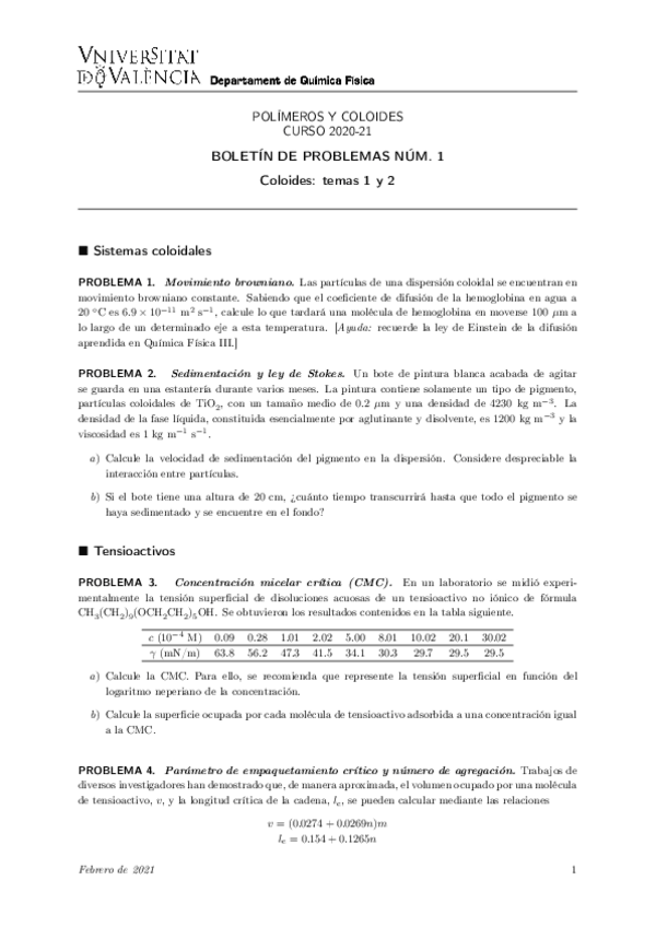 He publicado nuevos ejercicios de 4º Polímeros y Coloides: Ejercicios