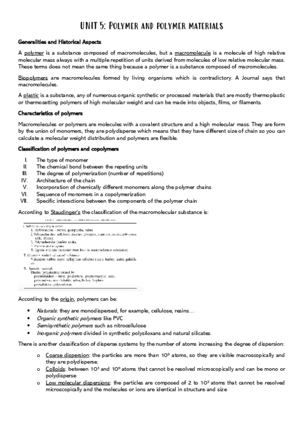 He publicado nuevos apuntes de 4º Polímeros y Coloides: Temario