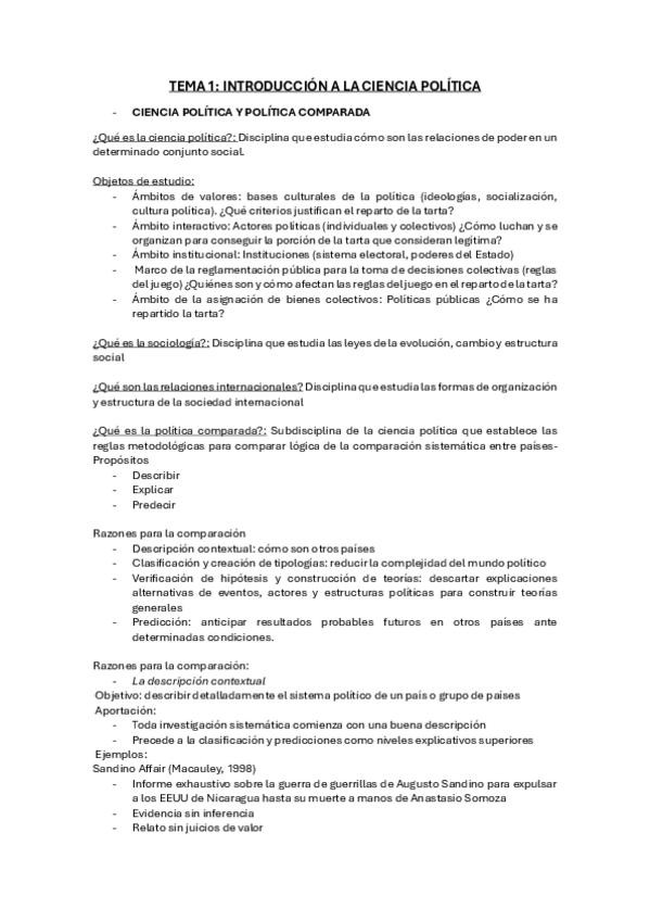 Esquema resumen TEMA 1 La política Comparada: Introduccion, objeto y método