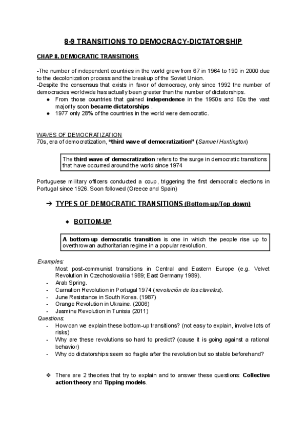 He publicado nuevos apuntes de 1º Política Comparada: Topic 5: Determinants of Democracy