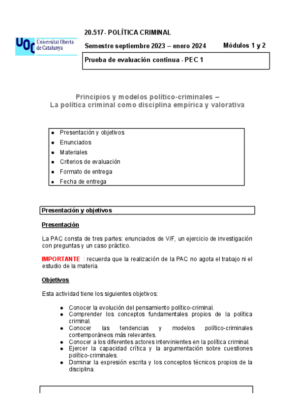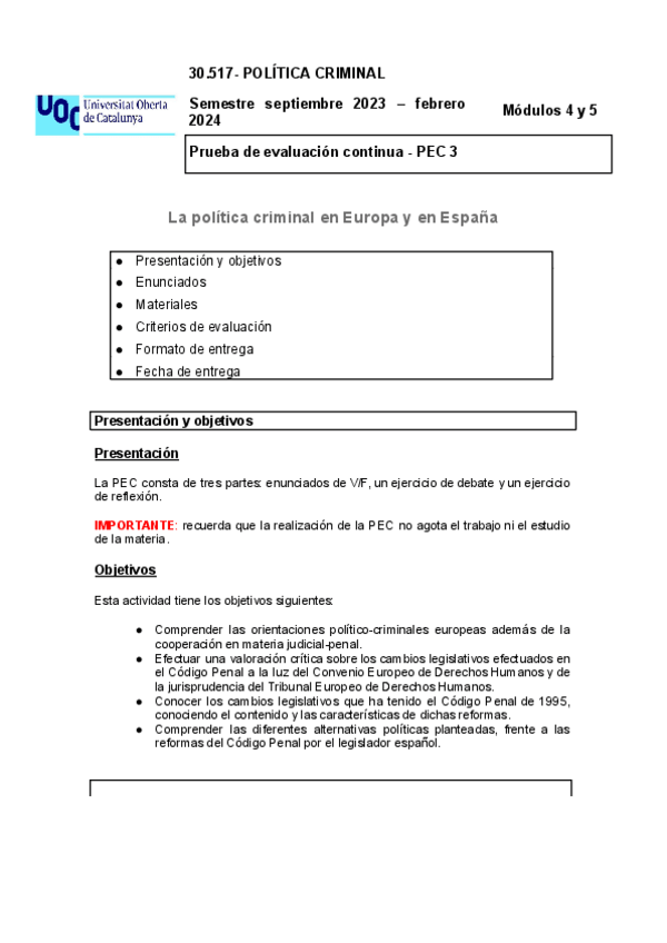 He publicado nuevos pec de 3º Política Criminal: Política Criminal