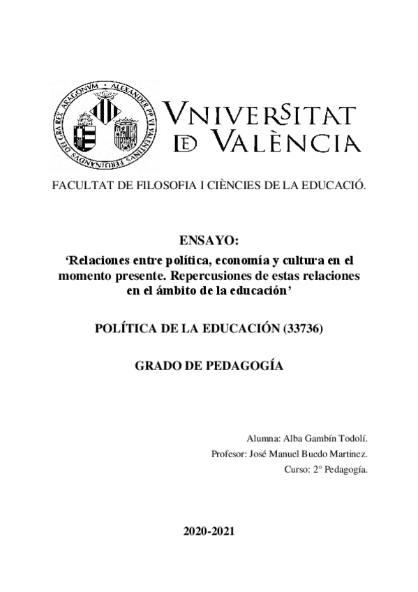 He publicado nuevos apuntes de 2º Politica de la educacion: Ensayo-Relaciones-entre-politica-economia-y-cultura-en-el-momento-presente.-Repercusiones-de-estas-relaciones-en-el-ambito-de-la-educacion..pdf