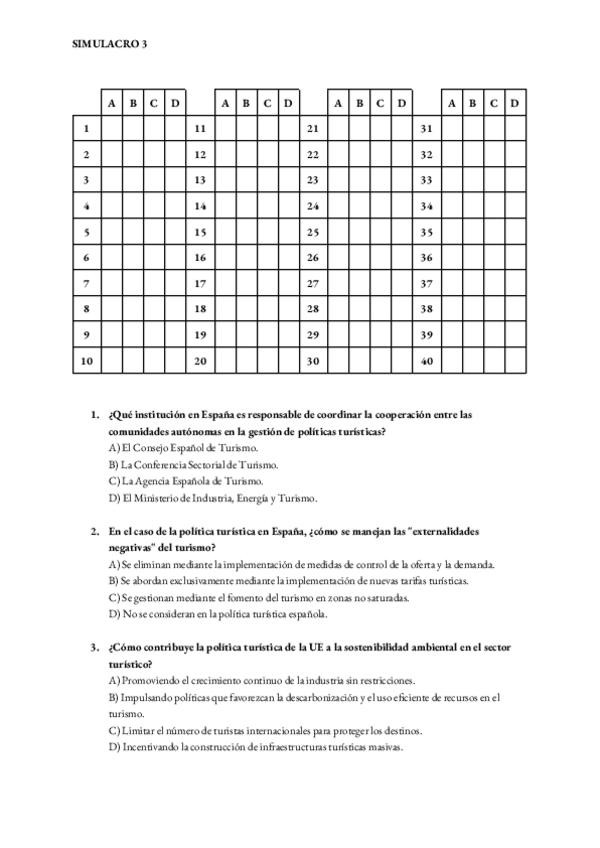 Simulacros Política Económica del Turismo