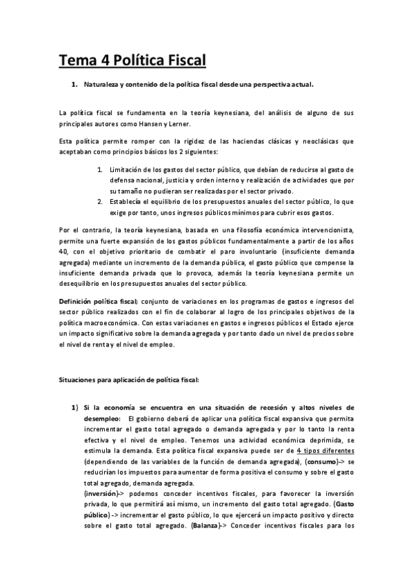 He publicado nuevos apuntes de 2º Política Económica: Tema 4. Política fiscal..docx