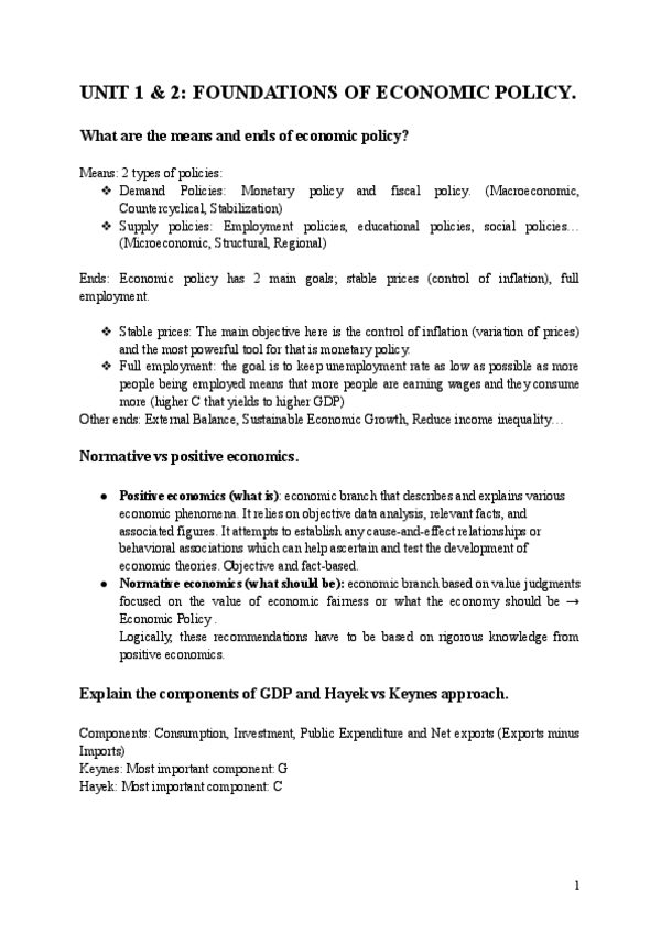 Apuntes de Política Económica para grupo E (en inglés) del curso 2022/2023