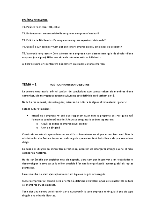 Política Financera de l'Empresa