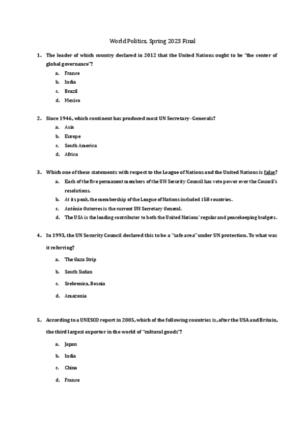 He publicado nuevos examenes de 1º Política mundial: World-Politics-Final-exam-spring-2023.pdf