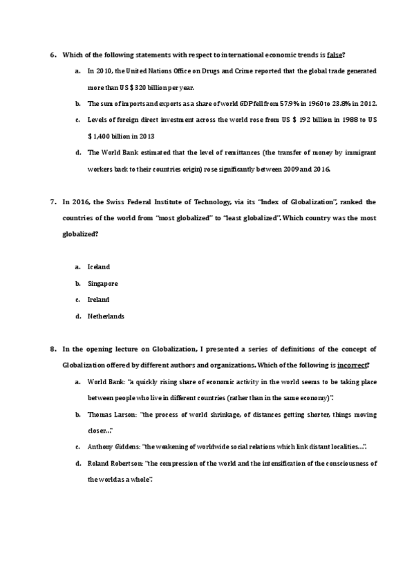 ÚTIL PARA REVISAR LOS TEMAS DEL FINAL( DESDE GLOBALISATION I hasta CLIMATE CHANGE)