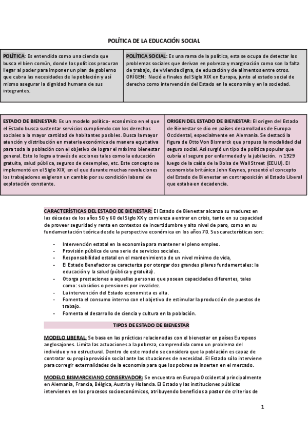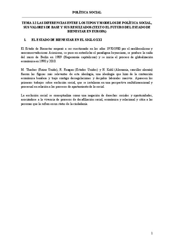 (TODOS LOS TEMAS) POLÍTICA SOCIAL Y DEL ESTADO DE BIENESTAR