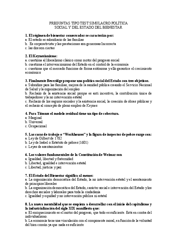 He publicado nuevos apuntes de 1º Politica Social y del Estado del Bienestar: SIMULACROS TIPO TEST