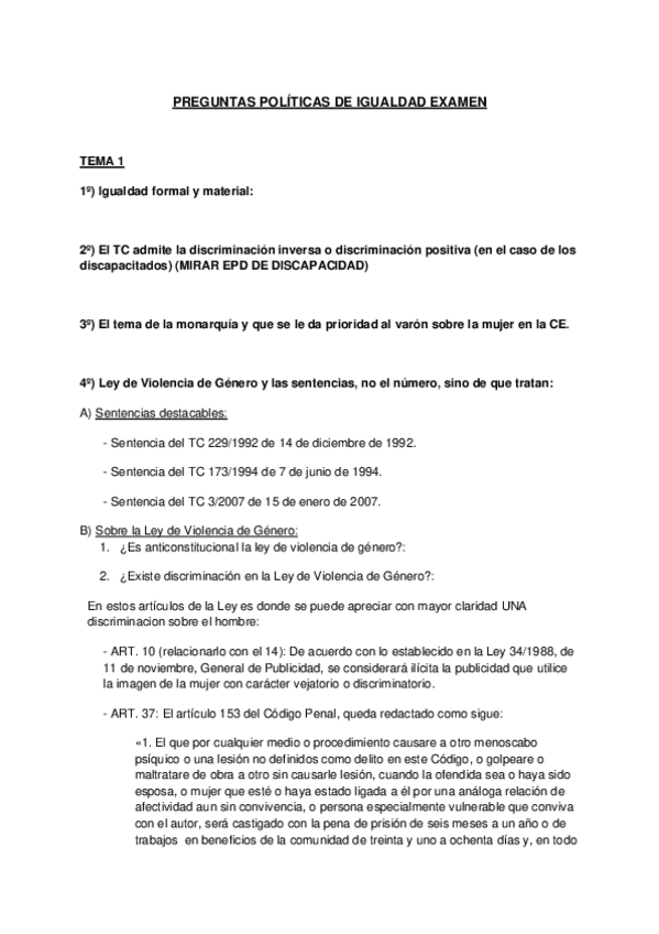He publicado nuevos apuntes de 4º Políticas de igualdad y Derecho: PREGUNTAS POLÍTICAS DE IGUALDAD EXAMEN