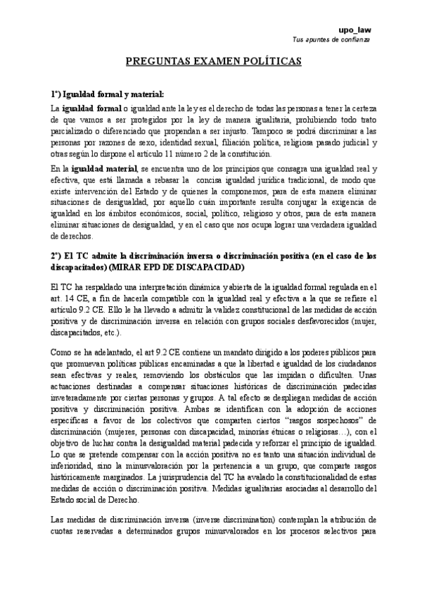 He publicado nuevos apuntes de 4º Políticas de igualdad y Derecho: PREGUNTAS POLÍTICAS