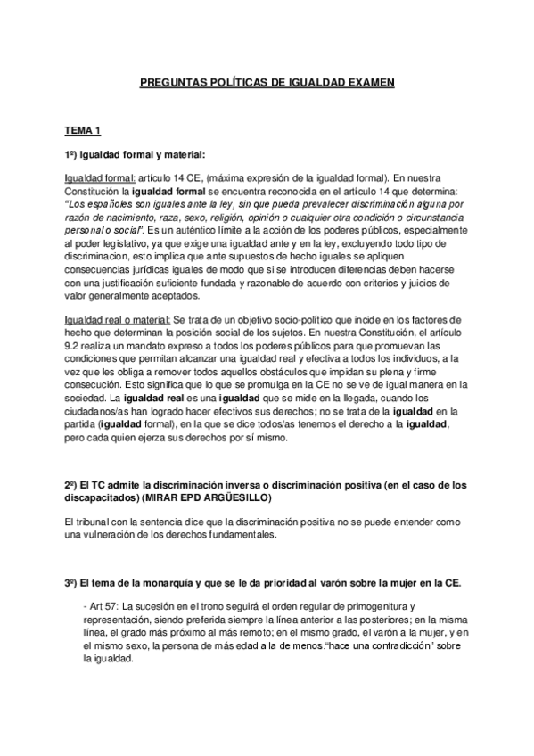 PREGUNTAS POLÍTICAS DE IGUALDAD EXAMEN