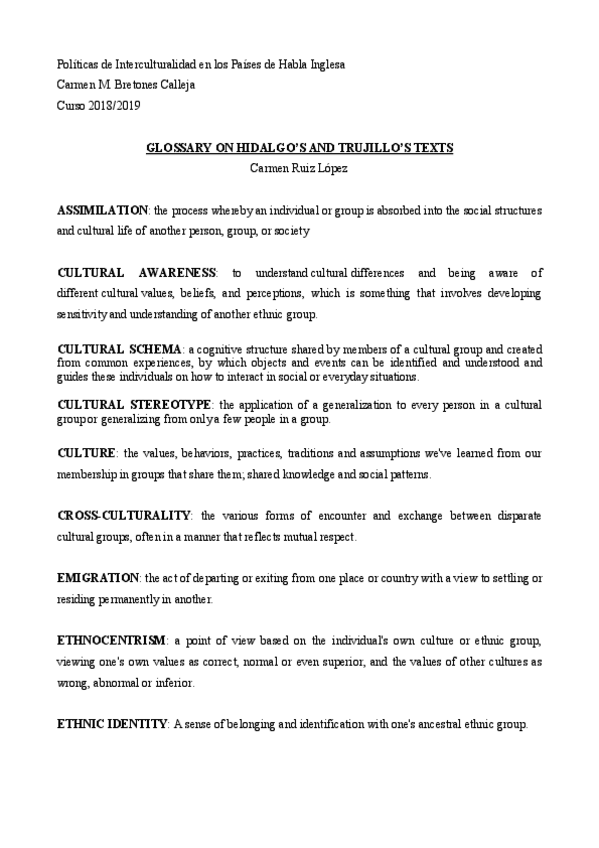 He publicado nuevos ejercicios de 4º Políticas de Interculturalidad en los Países de Habla Inglesa: Glossary n1.pdf